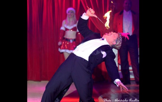 At the age of 5, he wanted to become a clown or a magician, the choice was not easy… And today he still hasn’t chosen, so he does both! In 2000, he created this burlesque character, a magician from the 30s who never copes with his stuff and whose tricks systematically turn into a disaster.Like a huckster, he spits out his tricks one by one and takes you to a parody of Grand Master of Magic. Despite his diligence or his fake honesty, his tricks are ruined! The great look of the man shatters any time he looses control of the situation. Despite his disastrous performance, this quirky man remains optimistic. The audience quickly embraces this friendly fellow. This allows him to work either in a circus or a cabaret without problem. He belongs to this kind of people pursuing their ideas and he has a lot! But any time he has one, he makes it. He also is a craftsman, a good work lover, able to make his own tricks from A to Z, even writing his musics.That’s why he added two short music shows to his repertoire, both done with unexpected « musical » instruments.